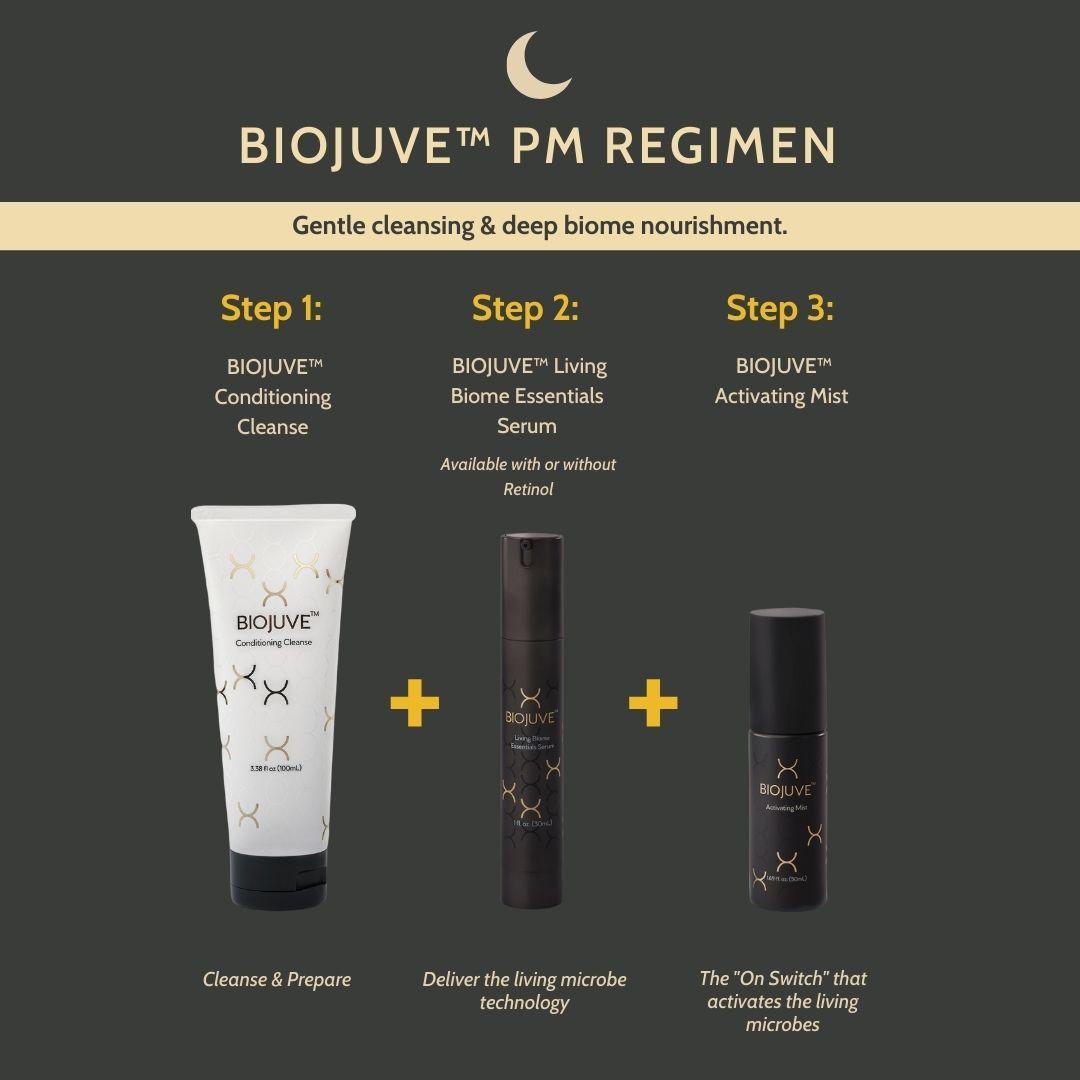 ⦁ BIOJUVE™ Living Biome Essentials Duo This dynamic duo includes BIOJUVE™ Living Biome Essentials Serum and Activating Mist. The serum’s Xycrobe™ Technology rejuvenates, improving wrinkles, texture, and tone. The Activating Mist complements the serum’s benefits.
