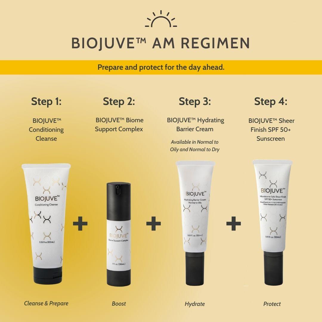 ⦁ BIOJUVE™ Hydrating Barrier Creams In Normal to Oily/Dry variants, BIOJUVE™ Hydrating Barrier Cream optimizes the Living Biome Essentials Serum by guarding against makeup and sunscreen disruptions.